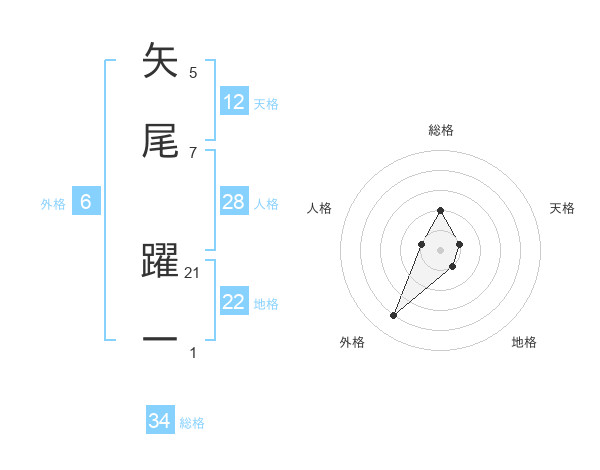 矢尾 躍一さんの天格は12画の1点!