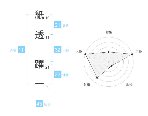 紙透 躍一さんの総格は43画の2点!