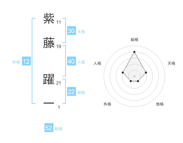 紫藤 躍一さんの総格は52画の4点!