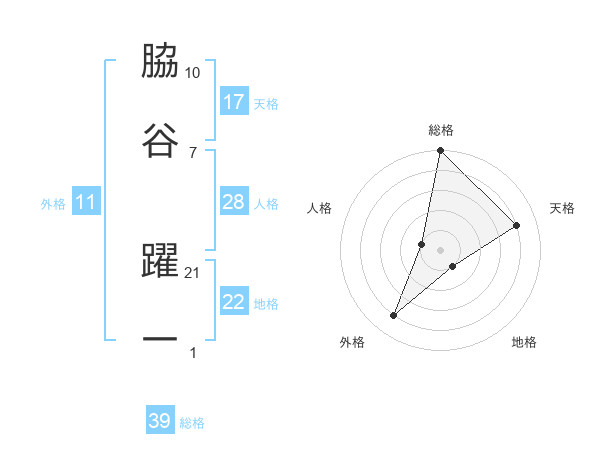 脇谷 躍一さんを姓名の画数から五運を鑑定