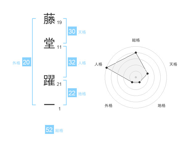 藤堂 躍一さんを姓名の画数から五運を鑑定