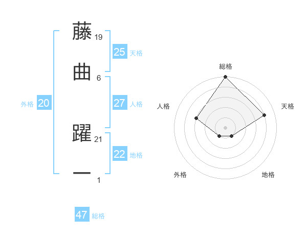 藤曲 躍一さんを姓名の画数から五運を鑑定