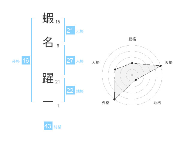 蝦名 躍一さんを姓名の画数から五運を鑑定