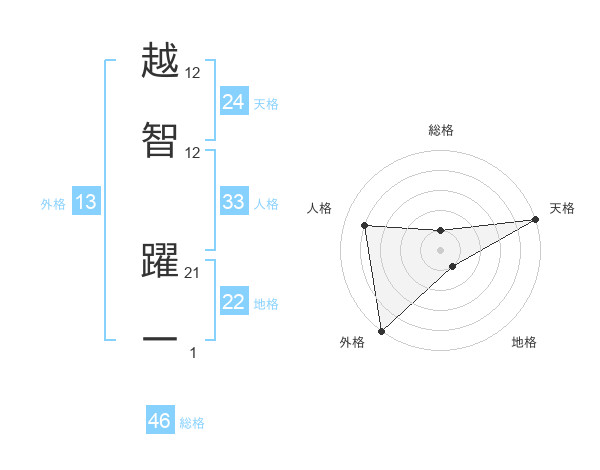 越智 躍一さんの天格は24画の5点!
