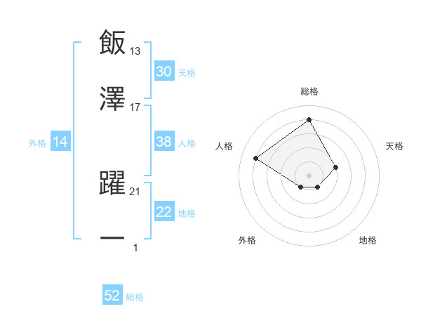 飯澤 躍一さんを姓名の画数から五運を鑑定