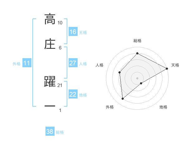 高庄 躍一さんの総格は38画の4点!