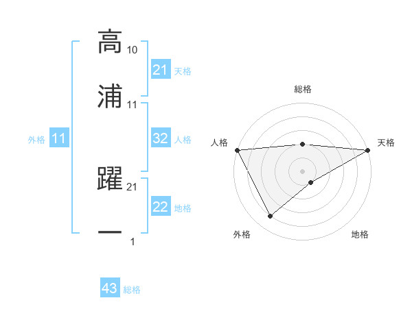 高浦 躍一さんの総格は43画の2点!