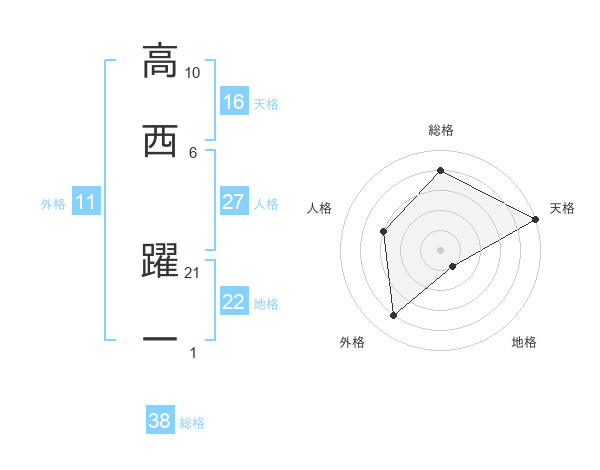 高西 躍一さんの総格は38画の4点!