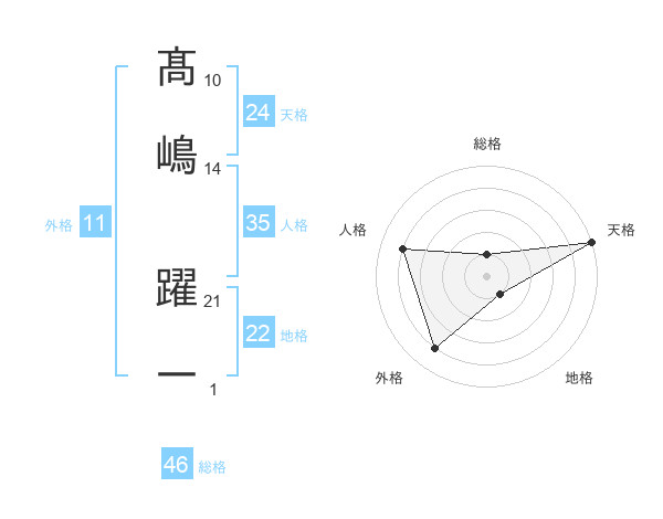 髙嶋 躍一さんを姓名の画数から五運を鑑定
