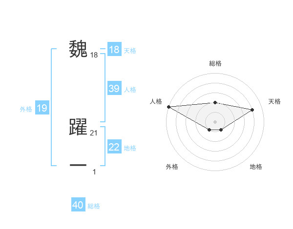 魏 躍一さんの総格は40画の2点!