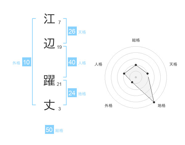 江辺 躍丈さんの総格は50画の2点!