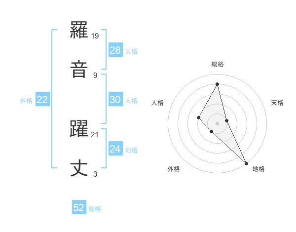 羅音 躍丈さんの総格は52画の4点!