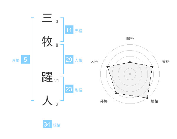 三牧 躍人さんの総格は34画の2点!