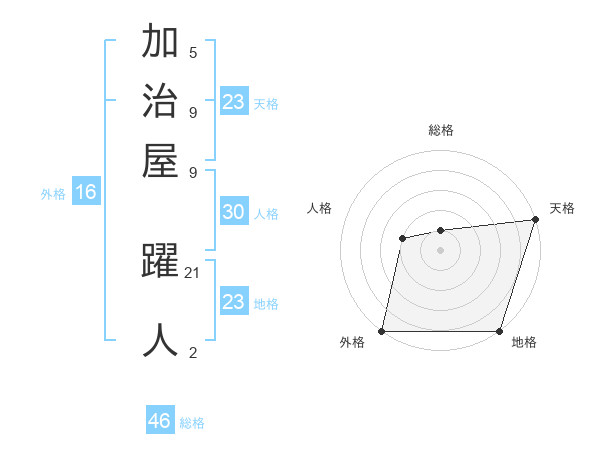 加治屋 躍人さんを姓名の画数から五運を鑑定