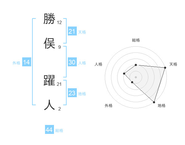 勝俣 躍人さんの天格は21画の5点!