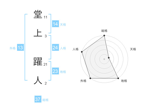 堂上 躍人さんを姓名の画数から五運を鑑定