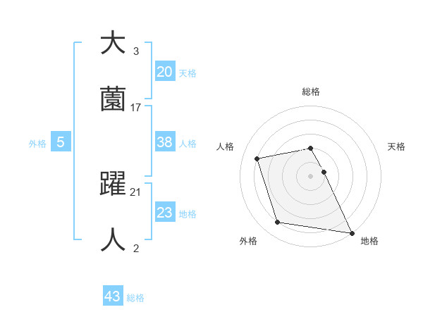 大薗 躍人さんを姓名の画数から五運を鑑定