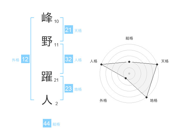 峰野 躍人さんの総格は44画の2点!