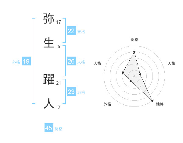 弥生 躍人さんの地格は23画の5点!