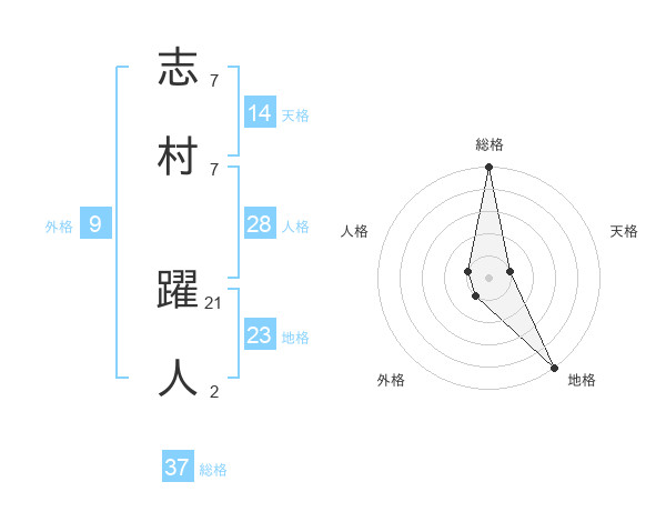 志村 躍人さんの総格は37画の5点!
