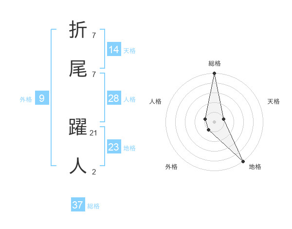 折尾 躍人さんを姓名の画数から五運を鑑定