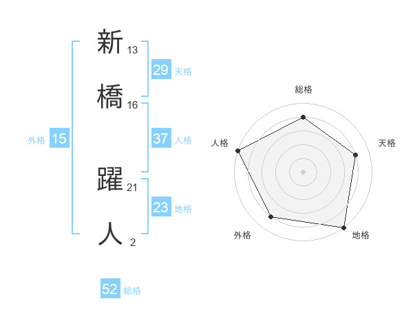 新橋 躍人さんの総格は52画の4点!