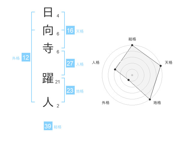 日向寺 躍人さんの総格は39画の5点!