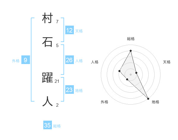 村石 躍人さんの総格は35画の4点!