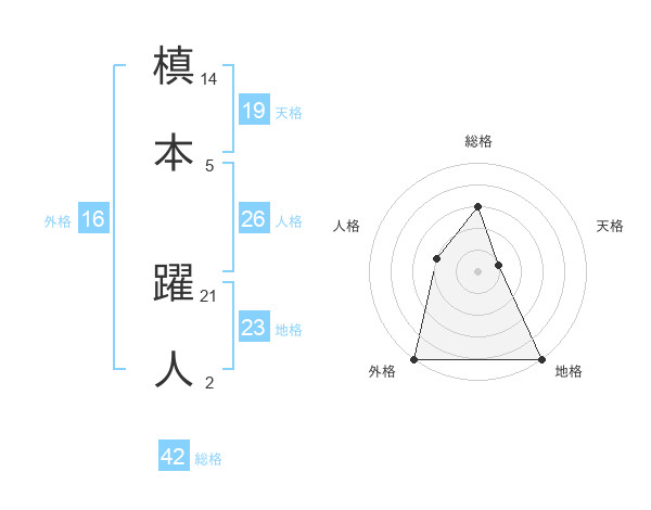 槙本 躍人さんの総格は42画の3点!