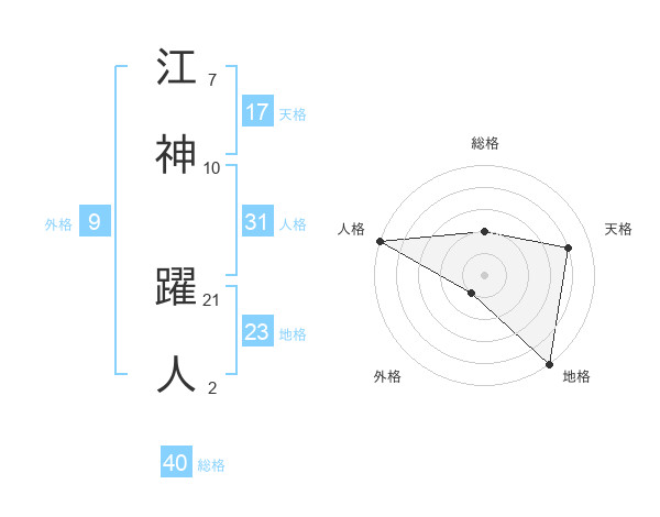 江神 躍人さんの地格は23画の5点!