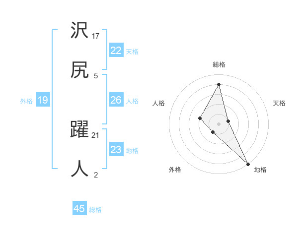 沢尻 躍人さんの総格は45画の4点!