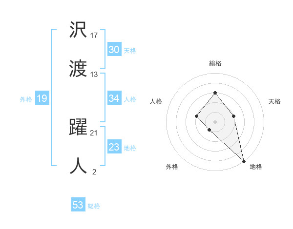 沢渡 躍人さんの総格は53画の3点!