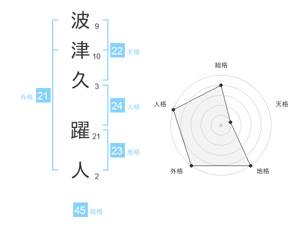 波津久 躍人さんの総格は45画の4点!