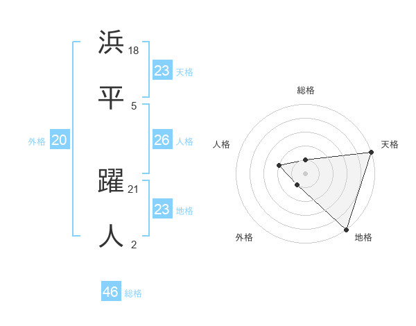 浜平 躍人さんを姓名の画数から五運を鑑定