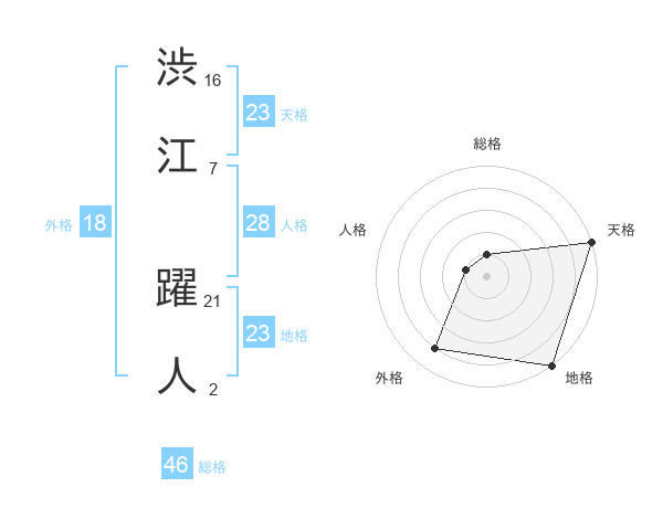渋江 躍人さんの天格は23画の5点!