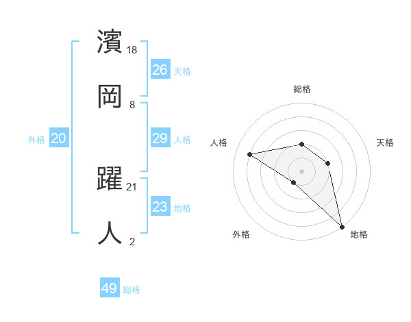 濱岡 躍人さんの天格は26画の2点!