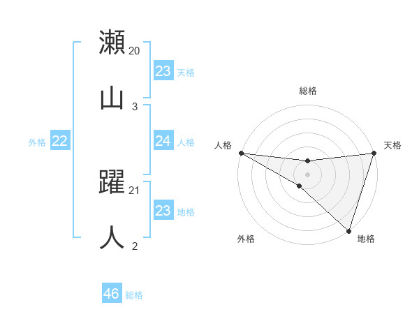 瀬山 躍人さんの天格は23画の5点!