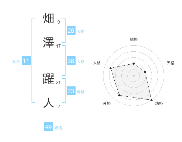 畑澤 躍人さんの総格は49画の2点!
