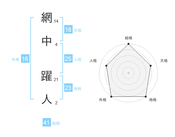 網中 躍人さんの外格は16画の5点!