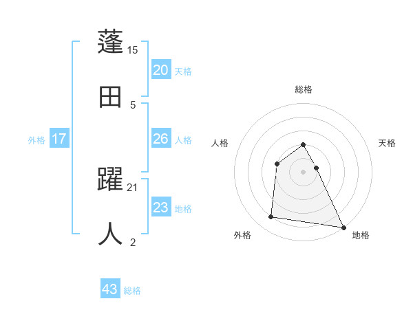 蓬田 躍人さんを姓名の画数から五運を鑑定