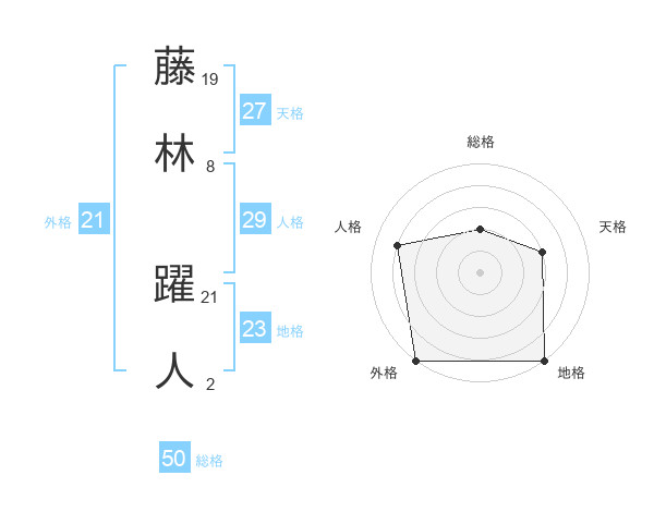 藤林 躍人さんの総格は50画の2点!