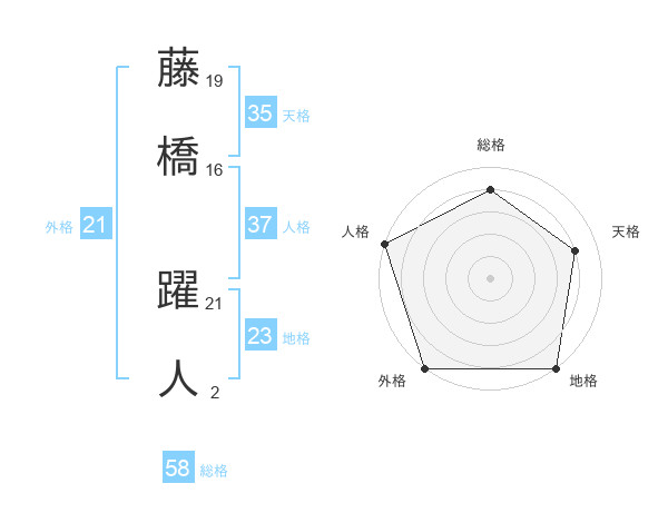 藤橋 躍人さんを姓名の画数から五運を鑑定