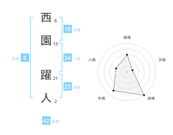 西園 躍人さんの地格は23画の5点!