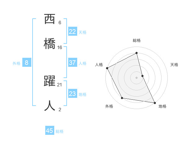 西橋 躍人さんの総格は45画の4点!