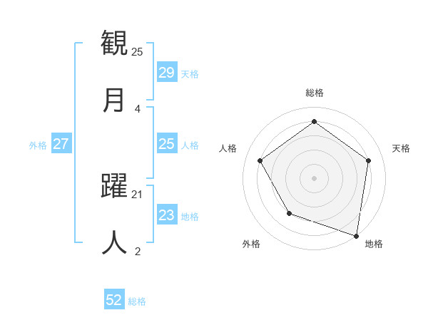 観月 躍人さんの総格は52画の4点!