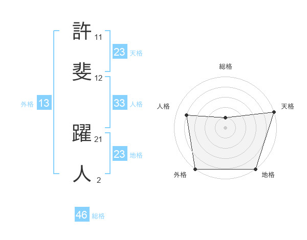 許斐 躍人さんを姓名の画数から五運を鑑定