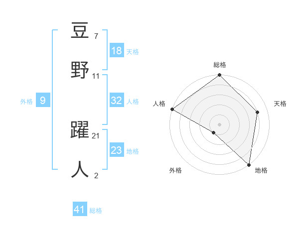豆野 躍人さんの総格は41画の5点!