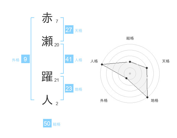 赤瀬 躍人さんを姓名の画数から五運を鑑定