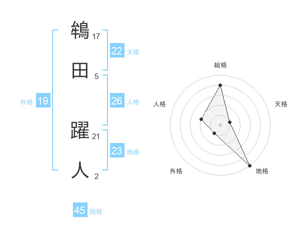 鴾田 躍人さんを姓名の画数から五運を鑑定