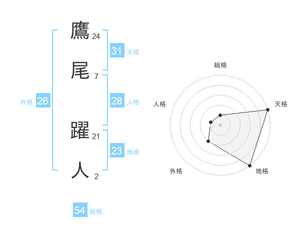 鷹尾 躍人さんを姓名の画数から五運を鑑定